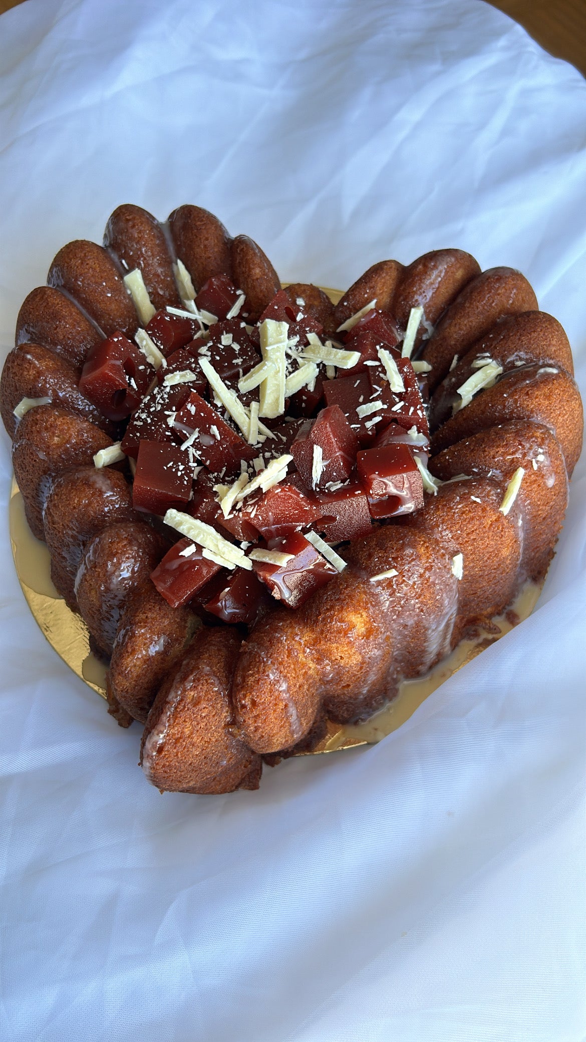Buttery moist red velvet pound cake with cooked cream cheese filling and topped with smooth cream cheese frosting and red velvet crumble Store : In the fridge...